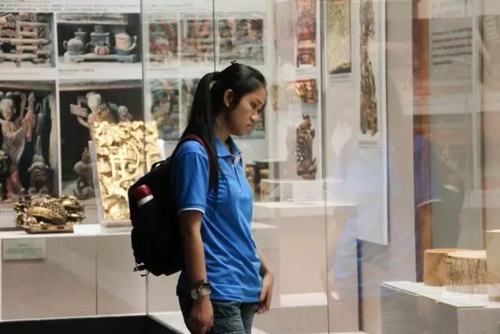 到达广东省博物馆后,同学们都迫不及待进入各个展馆一睹为快。面对着展馆内陈列的各个朝代出土的文物,不同时期的民间工艺品,新生们都惊讶于古代工艺的精美绝伦,赞不绝口。当看到《漆木精华——潮州木雕艺术》的展览时,新生们无不惊讶于其精致与细腻的雕琢,纷纷拍照留念。博物馆里的每一件展示的艺术品,均有其独特的魅力,值得我们驻足去细细地品味。显然,与博物馆只接触了一个上午对新生来说是远远不够的。但幸运的是,理工学院为新生们提供了一个契机,此后同学们也会有更多的时间慢慢去品味岭南文化。