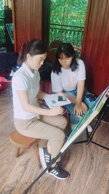 实习的首站是美丽的桥溪古韵。沿山道向上,青山绿水,空气中弥漫着生命自由舒展的清香。两侧深浅不一的茫茫绿色中,间或有几丛红色、白色的花,团团簇簇,使这小径又多了几分生气。途经桥溪,如游中一梦,一梦千年。邂逅历史飘零的书页,谁又能听到,古老的声音在呢喃着谁的梦。在这如诗如画,如梦似幻的山野村桥中,同学们随性而坐,挥笔从心,绘下的既是前景,亦是心声。返回酒店后,老师们依次对同学们的作品做了点评和指导,让同学们能互相取长补短,共同提高。