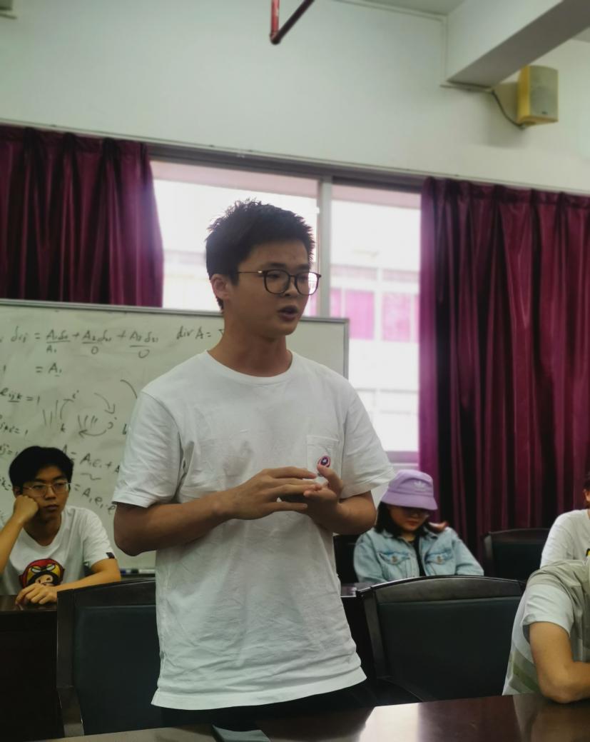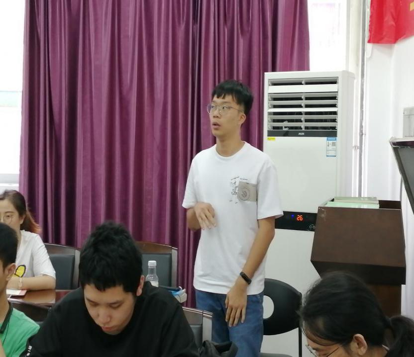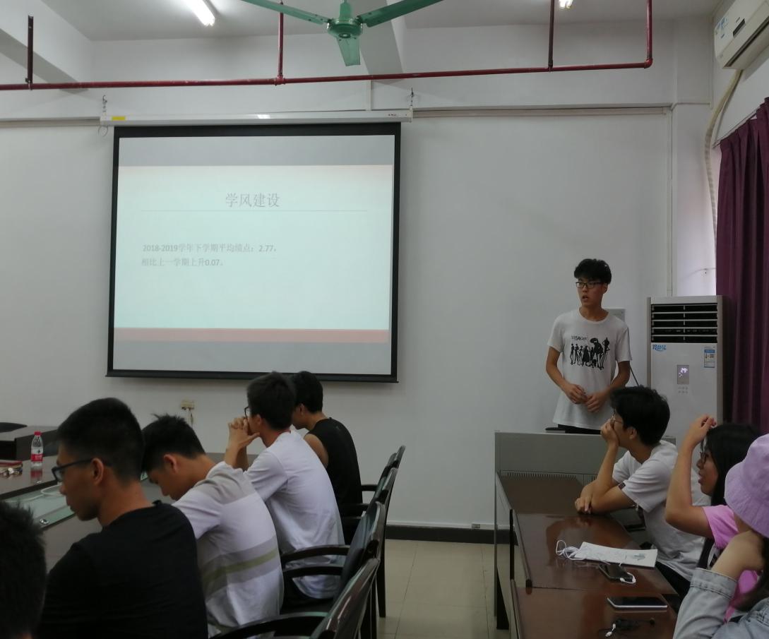 连国威班长首先向各位老师及同学总结了2018-2019学年班级成绩,对每位同学两学期的绩点成绩变化做出来分析与比较,相较于上一学期以及大一学年,全班同学的成绩有明显的进步,希望同学们能够继续保持。他向大家详细的展示了上一学年度班级抓好班级团建做出的努力及举办过的班级活动,包括全体同学共度中秋佳节,班级聚会,与18级新生的见面会等。他感谢各个班委与同学为班级建设所做的努力,并期待力学班能更加温馨。