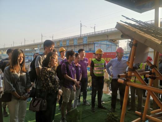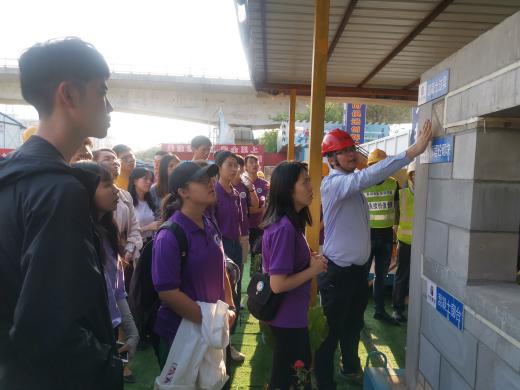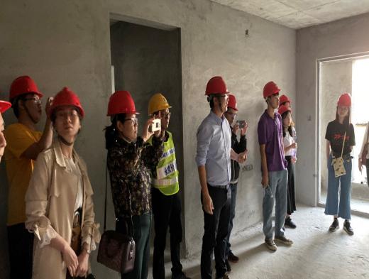 为了更深入的学习,当日下午,在雅居乐的精心安排下,李洁、曾岚、薄冬营带领同心并力班一行赴雅居乐狮山新地代表工程项目实地参观实习。雅居乐狮山新地代表工程项目经理胡业游在从专业角度为师生们介绍了项目的基坑支护、平面布置、项目管理措施、质量提升措施等项目概况,并带领师生一行参观了走进施工现场样板楼层进行实地参观,对楼层的施工工序、甩浆挂网、抹灰以及一些防水施工工艺进行了更深入的讲解。