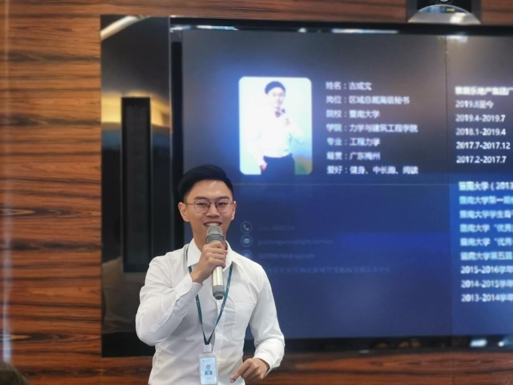 来自2013级工程力学专业的学院优秀毕业生代表古成文(现任雅居乐地产集团广州区域总裁高级秘书古成文)分享了自己的工作心得及职场心路,他表示自己从未离开过母校,与学院有着不解之缘,他今年担任了德赢VWIN官方网站第一期港澳台侨学生成长导师,机缘巧合,培养的正是同心并力班第一届和第二届的班长。他希望同学们在大学期间可以利用好资源平台,把握学习的机会,快速成长。