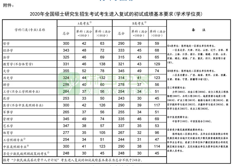 今日,教育部公布《2020年全国硕士研究生招生考试考生进入复试的初试成绩基本要求》(国家分数线),并印发通知,就做好2020年全国硕士研究生复试工作进行部署。