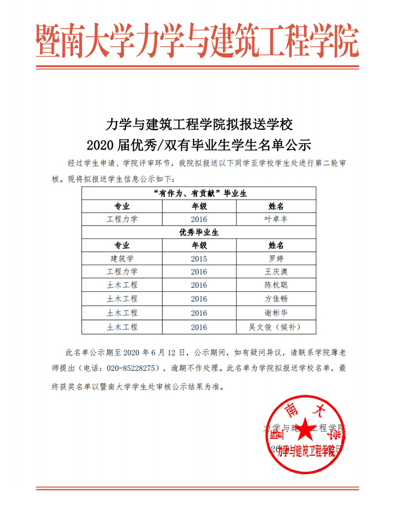 学院通知 | 德赢VWIN官方网站拟报送学校2020届优秀/双有毕业生学生名单公布