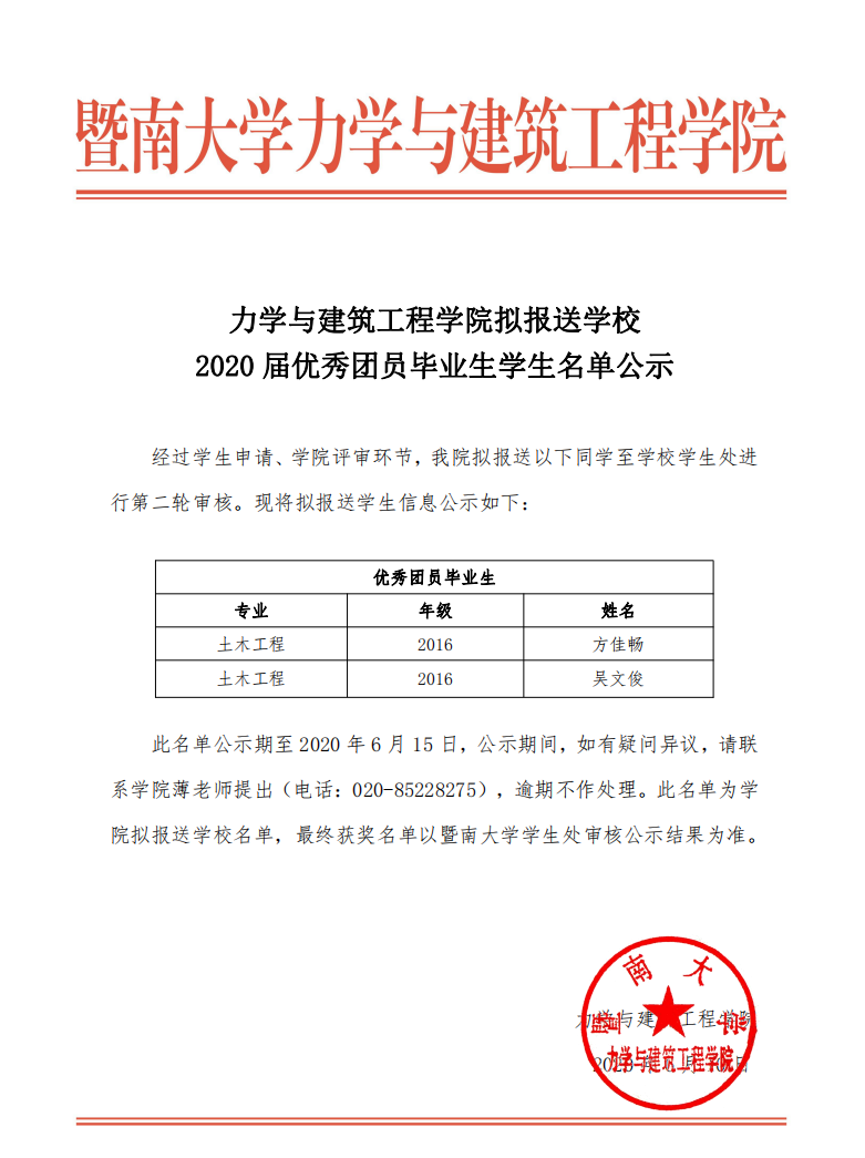 学院通知 | 德赢VWIN官方网站拟报送学校2020届优秀团员毕业生学生名单公示