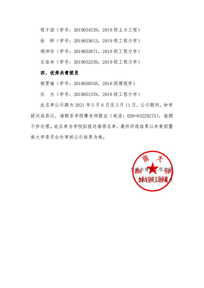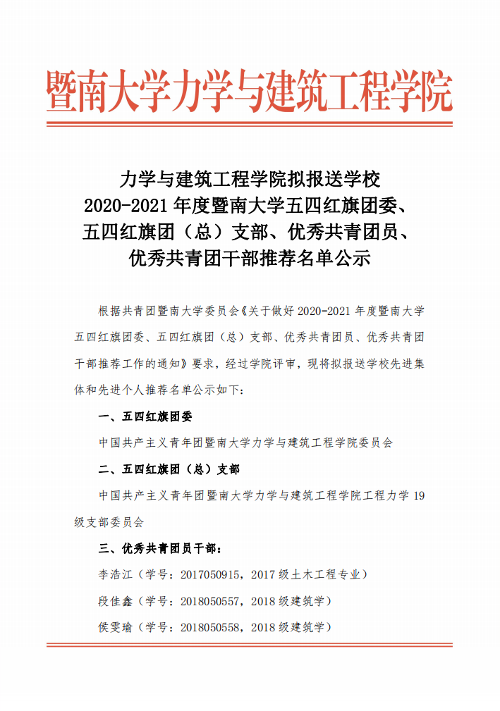 德赢VWIN官方网站拟报送学校2020-2021年度德赢VWIN官方网站五四红旗团委、五四红旗团(总)支部、优秀共青团员、优秀共青团干部推荐名单公示