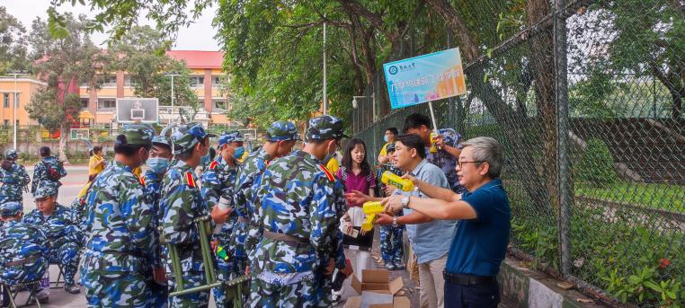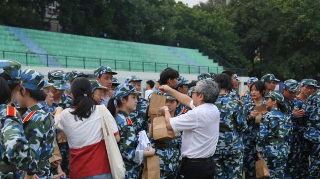 学院党委书记黄睿,主持工作副院长兼副书记聂振华,办公室主任王波等领导多次走进训练场,关怀慰问学生训练情况。训练开始第一天,黄睿就在军训场上亲切关心同学们的环境适应情况,勉励同学们认真参加训练,树立纪律精神,强健体魄,展现出力学与建筑工程学院学子们坚韧不拔、吃苦耐劳的精神风貌。接近训练尾声,学院还为军训、新训新生们准备了解暑饮品。9月16日下午开训前,黄睿、王波来到苏州苑篮球场,一一为同学们分发饮品,嘱咐同学们注意防暑消暑,补充饮水,适当休息,继续坚持训练,以最佳状态迎接即将到来的训练汇演。