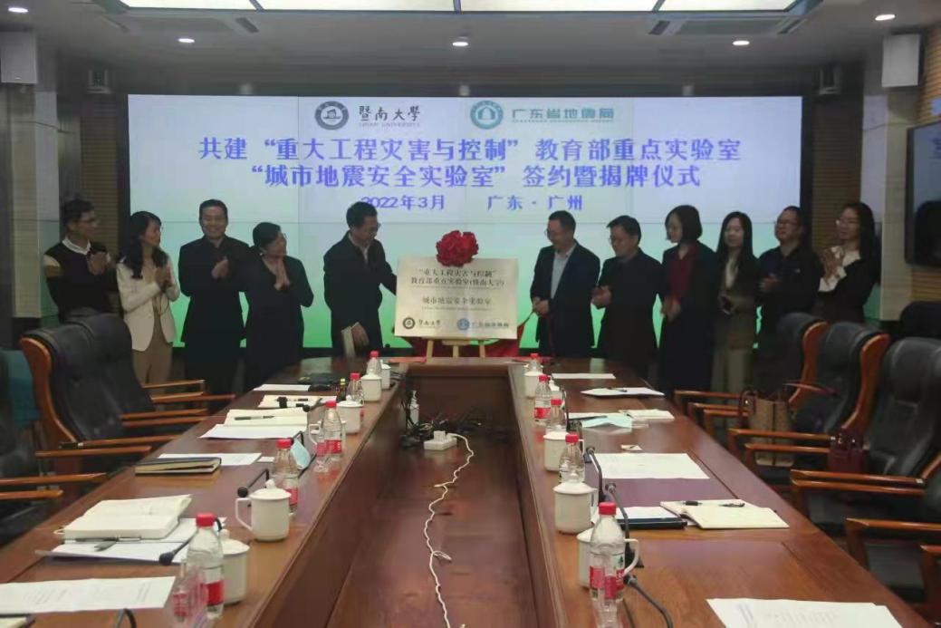 2022年3月2日,德赢VWIN官方网站与广东省地震局联合共建“重大工程灾害与控制”教育部重点实验室(以下简称“重点实验室”)揭牌仪式暨学术交流会在广东省地震局举办。学院主持工作副院长兼党委副书记聂振华、党委副书记兼副院长黄世清、院务助理习会峰及学院相关教师参加了揭牌仪式。广东省地震局局党组书记、局长孙佩卿,党组成员、副局长何晓灵及地震局各处所人员出席了此次活动。