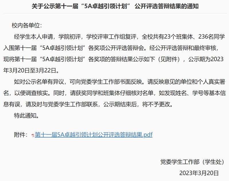 我院多名学子 在第十一届5A卓越引领计划中获奖