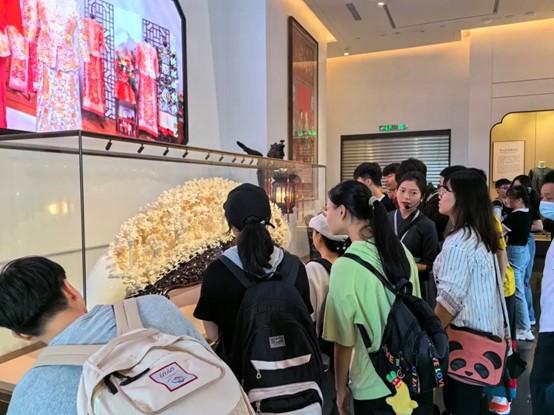 踏进主场馆的大门,仿佛进入了一座融汇了古老智慧与现代艺术的殿堂。历史的厚重感油然而生,仿佛千年的遗产在这里尽情绽放。参观文化馆是一次深入了解中华优秀传统文化的珍贵机会,大家跟随讲解员的脚步,既惊叹于古人的智慧与努力,又为很多手艺和工艺品已在历史长河中隐没而遗憾。