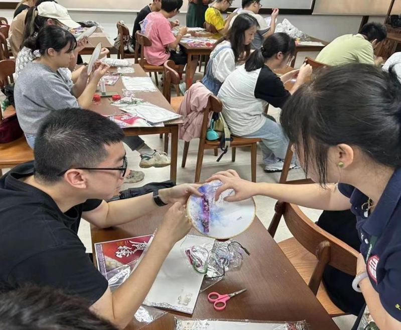 在结束主展厅的参观后,学员们移步到课室开展非遗文化沉浸式体验活动——广绣体验。在活动现场,学员们得以近距离接触这一非遗技艺,感受指尖传承的魅力。绚丽的丝线在学员们的指尖跳动,如诗如画地勾勒出美丽的图案。身处宁静而充满历史氛围的广绣体验场景中,学员们怀着一丝期待和敬畏,沉浸在这个独特的非遗文化传承之旅中。亲手参与广绣的创作过程,每一针每一线都成为与非遗文化深度对话的见证,学员们投入其中用心绣制,心与手的默契交融,感受了文化与艺术的力量。本次广绣体验活动由广州荔湾非遗协会支持,特邀市级非遗传承人刺绣工艺美术师李敏、广绣老师谭靖榆主讲教授。