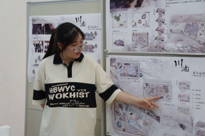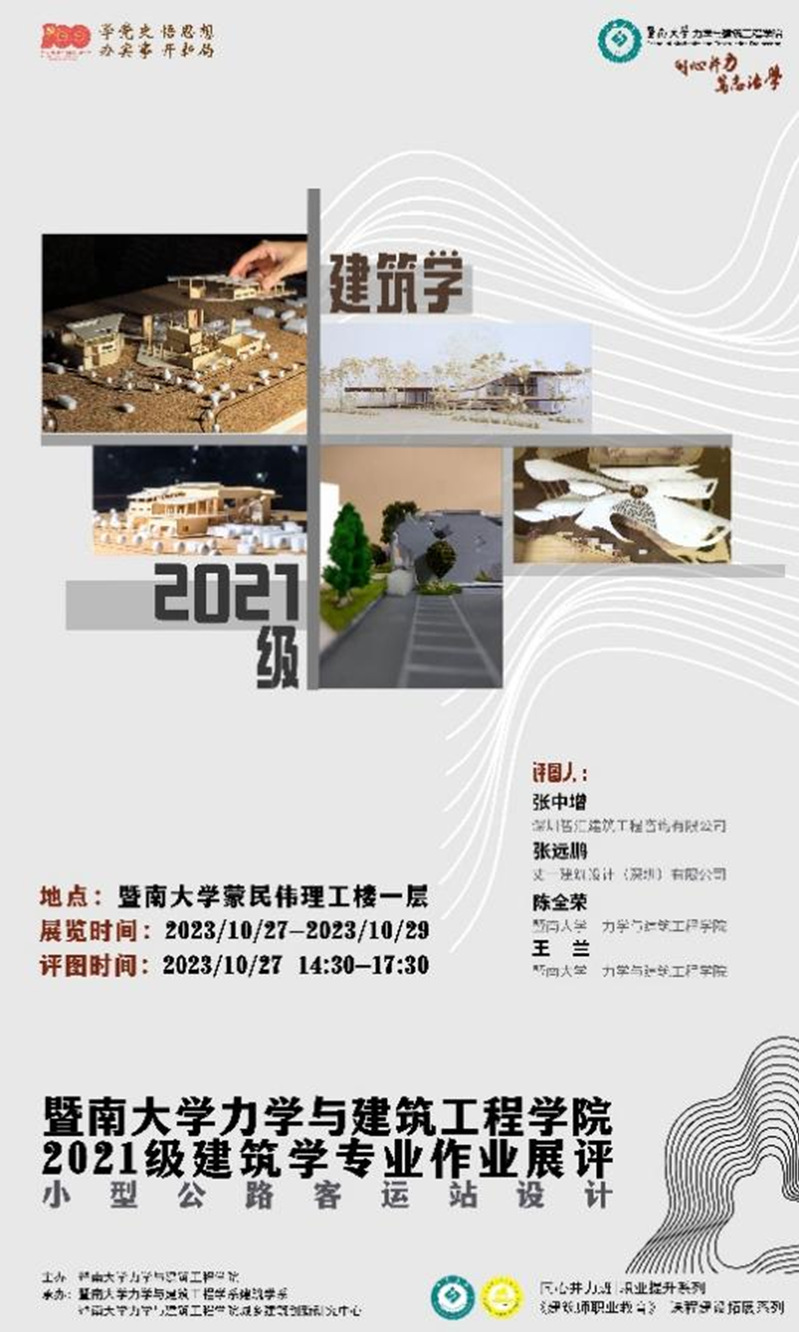 从对场地文脉、建筑功能及建筑精神内核的分析中提取设计出发点,用建筑空间设计语言予以回应并以适当的方式表达出来,是建筑学专业学生的核心能力。2023年10月27日,德赢VWIN官方网站2021级建筑学专业在蒙民伟理工楼一楼大厅举办了客运站设计作业成果展评。
