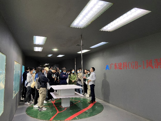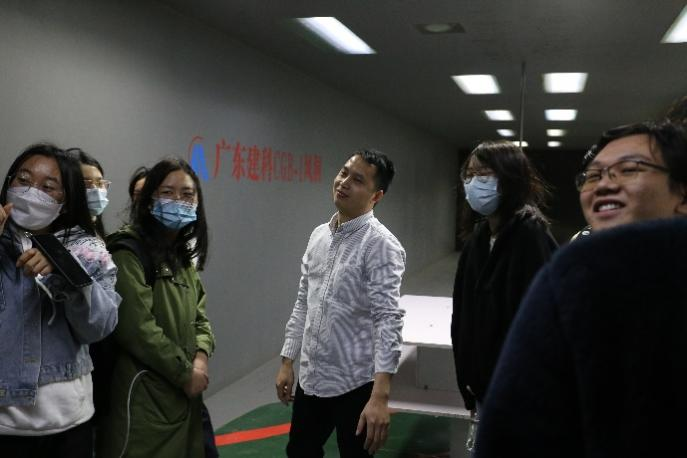 在参观风洞实验室时,广东建科院风工程研究中心的工程师饶晓佳为同学们详细讲解了风洞的构造、规模,风洞实验的基本原理等知识,增长了同学们的见闻。为让同学们能真切感受风洞的运行情况,还专门为同学开启了风机进行了现场演示。