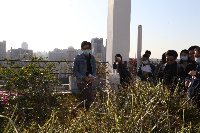 广东建科院绿色建筑中心的建筑师于工和周工带领师生分别参观了楼顶的种植屋面、太阳能光伏板、小型气象站、太阳能集热板等装置,参观了负一层车库的导光管和采光天井、风洞实验室以及用于工程实时监测维修的5G车。