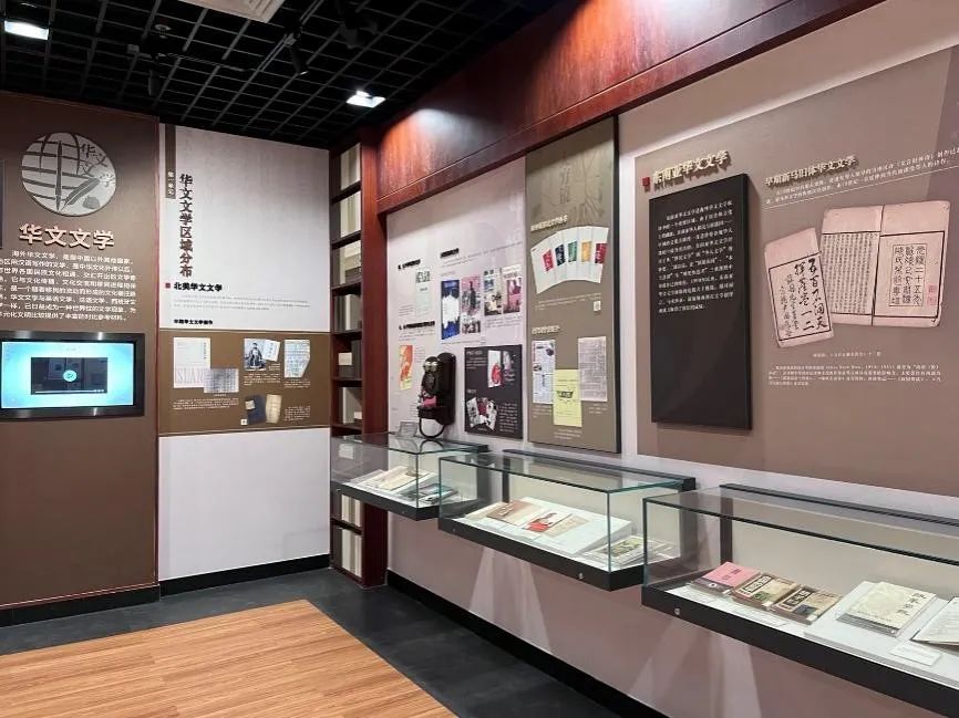 整个展览馆的主要内容可以分为两方面:其一是华侨华人让中华文化走向了世界,另一方面是华人华侨帮助了中华民族的发展。就如抗日战争时期,海内外炎黄子孙同仇敌忾,华侨华人组织抗日救亡团体、开展抗日宣传、抵制日货、捐资捐物和直接回国作战,为抗日战争的胜利做出了卓越贡献。同时,在上世纪初,海外华商在中国开设了许多工业、铁路建设等企业,为我国早期的工业化奠定了基础,也促进了民族企业的发展,推动了中国近代化进程。另一方面,许多华人华侨在海外办私塾、开中餐馆、用中文进行文学创作,很大程度上促进了中国的文化、艺术、宗教、习俗等走向世界,与世界文化相交融。