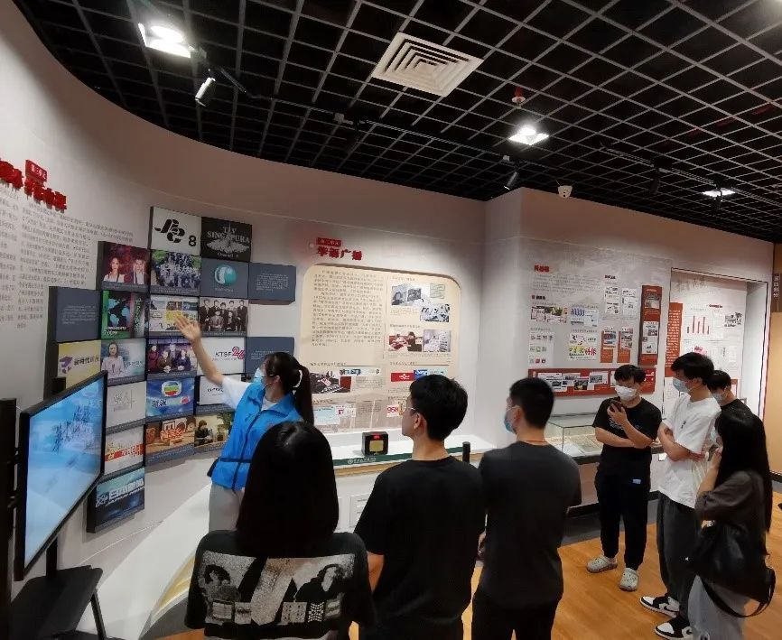 随后,学员们跟随习近平总书记的步伐,进入到华人华侨历史文化展览馆进行参观。展览馆分为五个部分,分别是“华侨华人、华商经济、华文教育、华文传媒、华文文学”。展览馆入口的顶部有两块船帆,展览馆的标志上有两个同心圆,寓意着同舟共济,也与德赢VWIN官方网站“朔南暨,声教讫于四海”的使命相呼应。