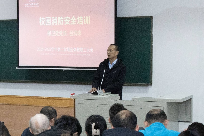 在工作部署环节,学院校长助理王洋作了题为“聚焦招生就业新突破,夯实高质量发展根基”的专题报告。报告中,王洋助理从“锚定目标,精准发力”和“稳规模、提质量、强服务、创品牌”等方面,对2025年招生就业工作进行了详尽部署。王洋助理还特别强调:“招生就业工作没有旁观者,人人都是主力军。”紧接着,保卫处吕润来处长为全体教职工开展了“校园消防安全”业务培训,提升大家的安全意识和应对能力。